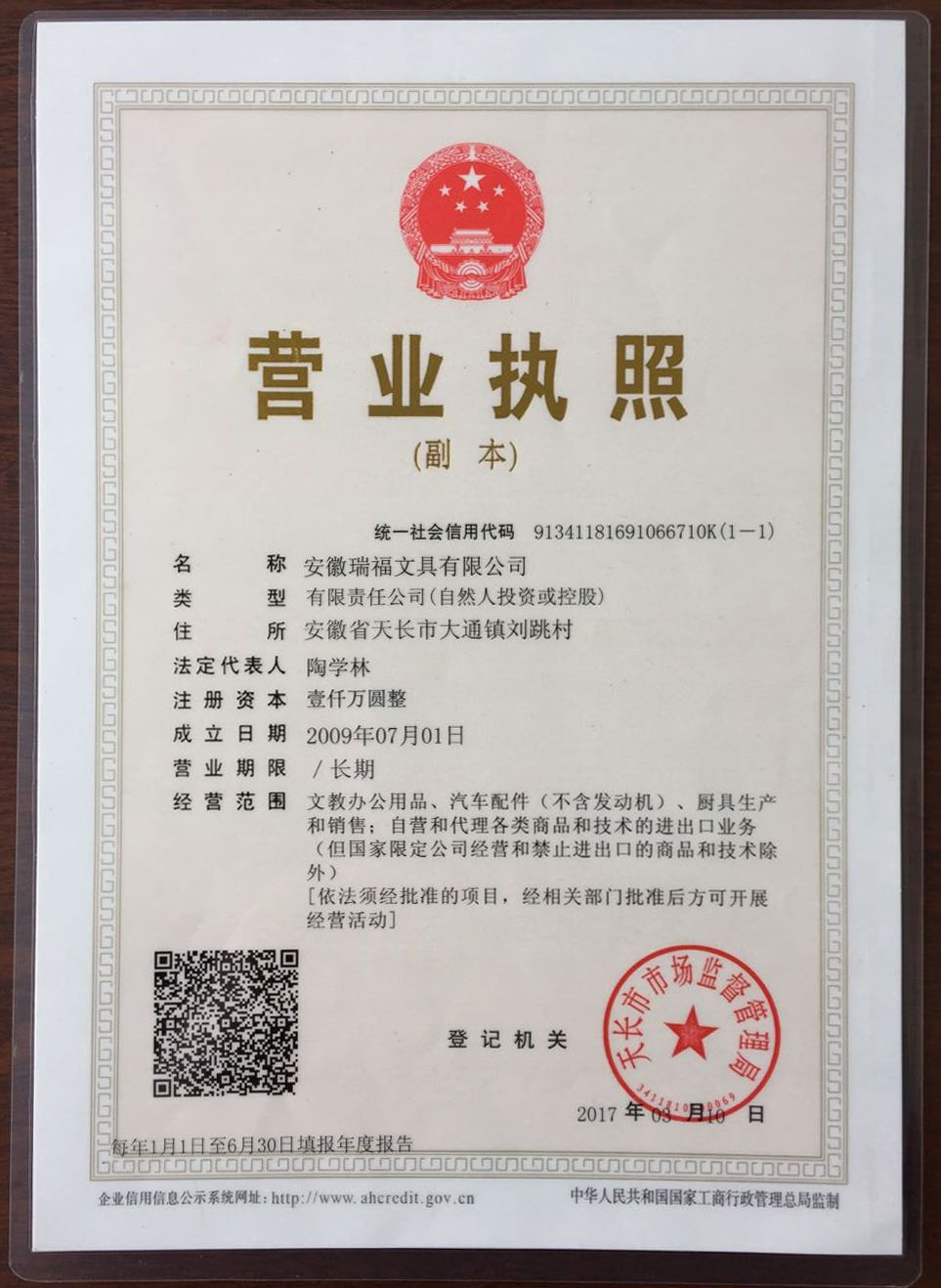 安徽瑞福文具有限公司成立于2009年,坐落于安徽省東大門,毗鄰南京和揚(yáng)州的安徽省天長市
